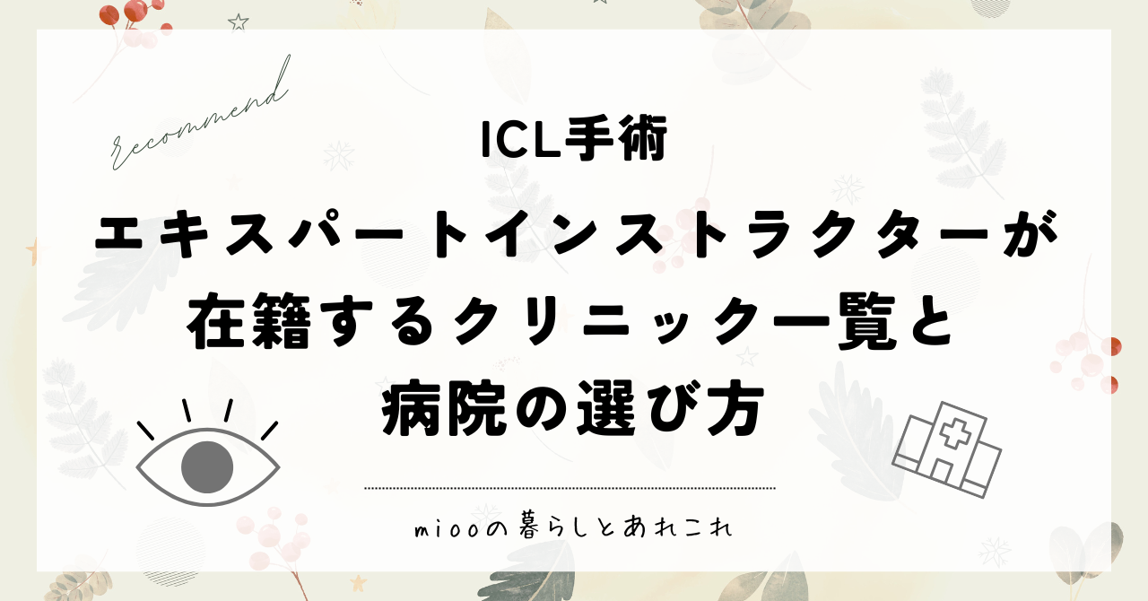 今回はわたしの経験を踏まえ、ICLエキスパートインストラクターについて、エキスパートインストラクターが在籍する全国のクリニック、病院の選び方を紹介します。